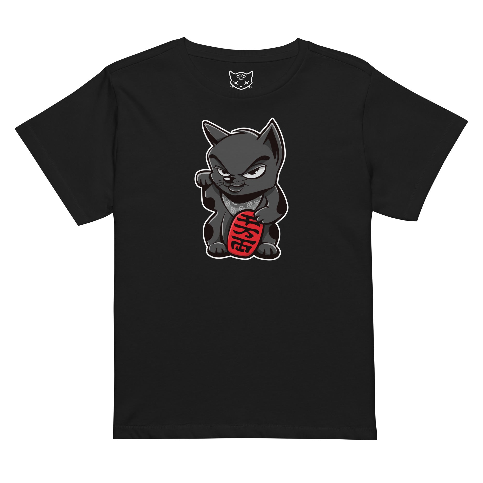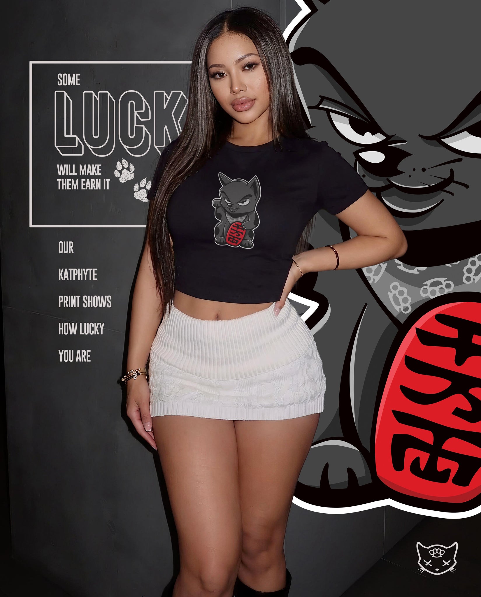 The Lucky Kat crop-top is not about superstition. It is about preparation meeting opportunity. It is for the woman who makes her own breaks and walks like she already knows the outcome.